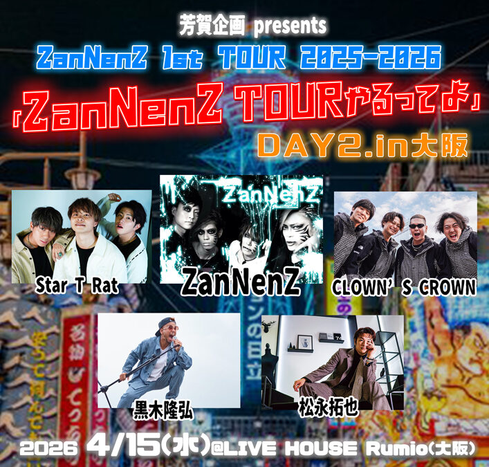 MENU ホーム スケジュール アクセス ホールレンタル 機材・図面 FAQ お問い合わせ 2026.4.15_ZanNenZ 1st TOUR 2025-2026 「ZanNenZ TOURやるってよ」 2026/02/20 カテゴリー: 投稿者:Rumio