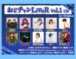 MENU ホーム スケジュール アクセス ホールレンタル 機材・図面 FAQ お問い合わせ 2026.1.31_おどチャンLiveR Vol.1 inOsaka 2部_アートボード 1 2026/01/30 カテゴリー: 投稿者:Rumio